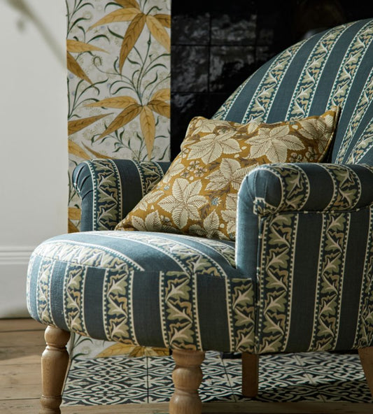 Red Car Stripe Fabric - Emery Blue - 227248 - Morris & Co
