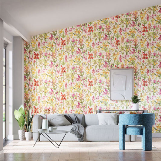 Kalina Wallpaper - Parchment/Forest/Azalea - HC4W113009 - Harlequin