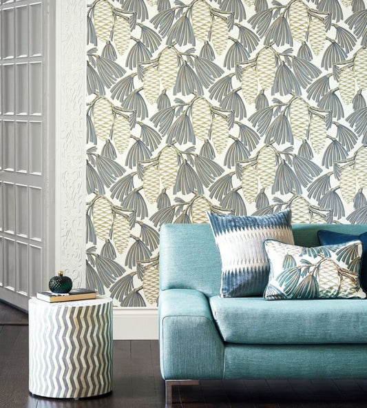 Foxley Wallpaper - Kingfisher/Gold - HSAW112127 - Harlequin