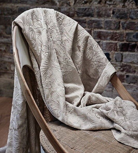 Reimagined for contemporary living yet faithful to the master craftsmanship of William Morris, these designs are presented in a subtle palette of neutral tones, layered textures, and refined metallic ink details—transforming each piece into a stunning work of art for the modern home.