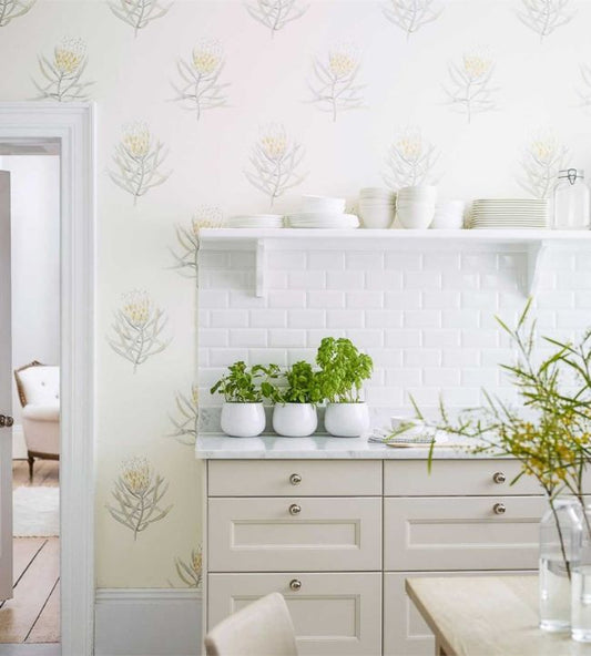 Protea Flower Wallpaper - Porcelain/Blush - DART216330 - Sanderson