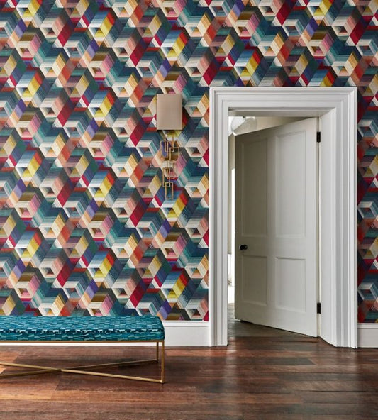 Arccos Wallpaper - Cerise/Neptune/Teal - HMWF111969 - Harlequin