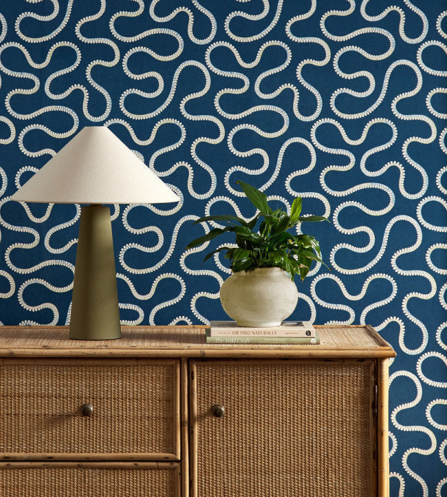 Take an imaginative stroll along this meandering path design, inspired by an embroidery of the same name in the collection and translated into a relaxing wallpaper print. Bimble is a modern multidirectional design conjuring memories of journeys on foot and ambles along the river.