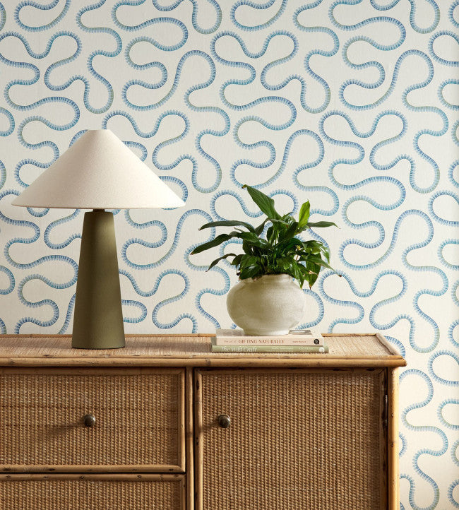Take an imaginative stroll along this meandering path design, inspired by an embroidery of the same name in the collection and translated into a relaxing wallpaper print. Bimble is a modern multidirectional design conjuring memories of journeys on foot and ambles along the river.